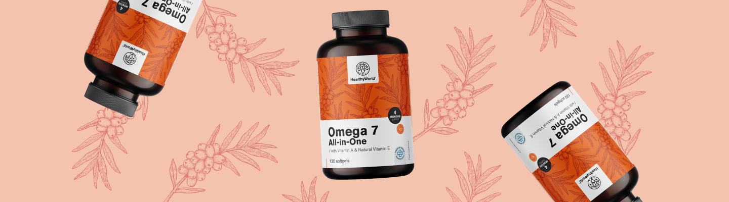 Kapsuly Omega-7 All-in-One kombinujú 4 starostlivo vybrané mastné kyseliny: