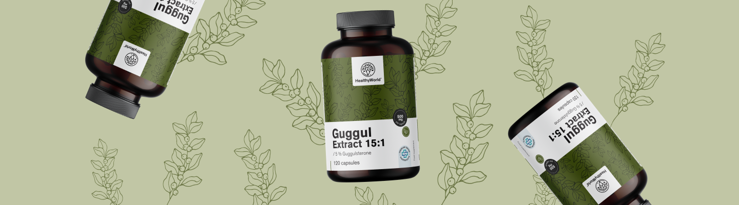 Guggul (Commiphora mukul) s vysokým obsahom guggulsterónov má mnohé prospešné vlastnosti pre ľudský organizmus, ktoré už viac tisíc rokov pozná ajurvéda: